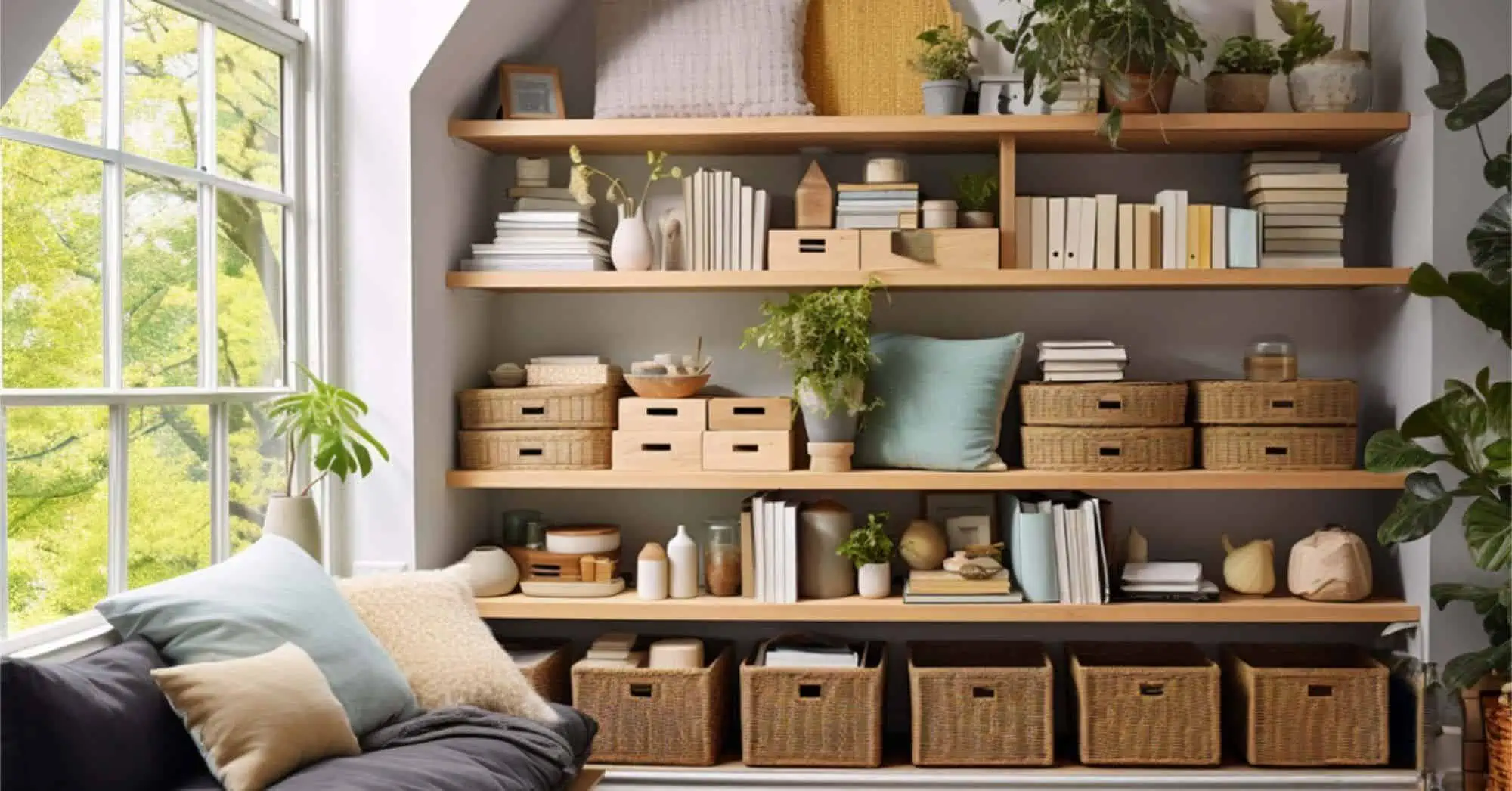 • Tall shelving units: Extending from floor to ceiling, these units can store books, decorative items, or household essentials.